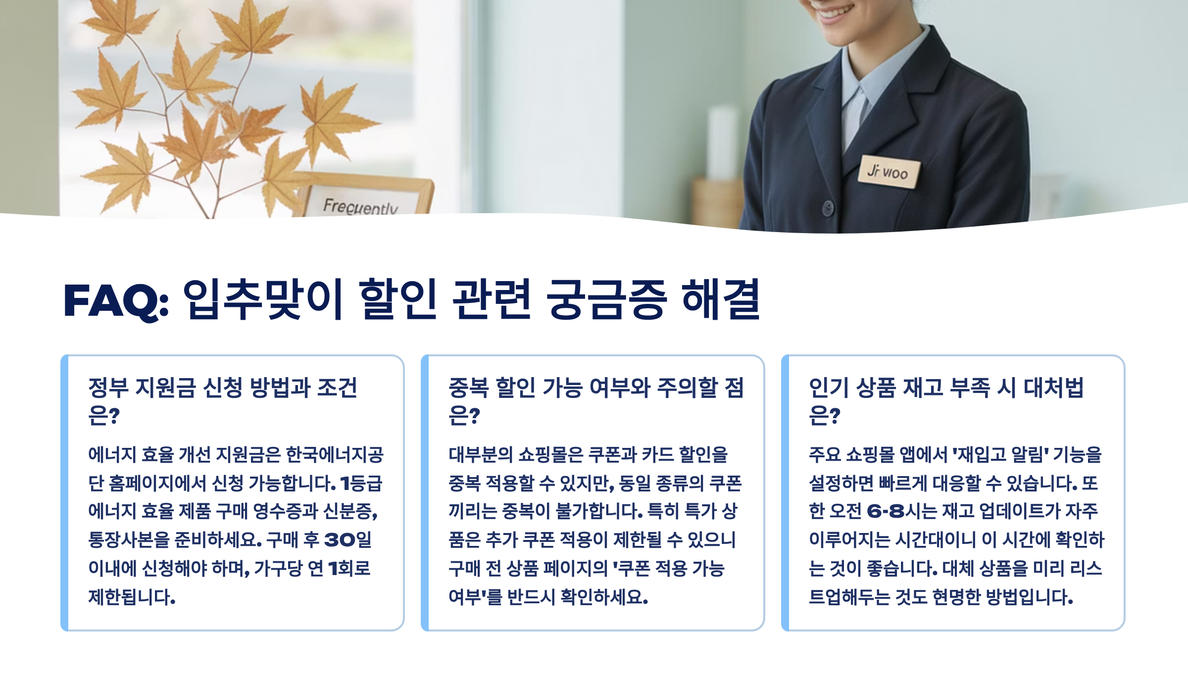 오늘 소개해드린 정보들을 잘 활용하시면 같은 제품도 훨씬 저렴하게 구매할 수 있을 거예요. 정부 지원금 신청을 잊지 마시고, 카드 혜택과 포인트도 꼼꼼히 챙기세요. 입추의 지혜로운 쇼핑으로 건강도 챙기고 가계 부담도 덜어보세요. 모두가 알뜰하고 행복한 입추 보내시길 바랍니다! 🍂