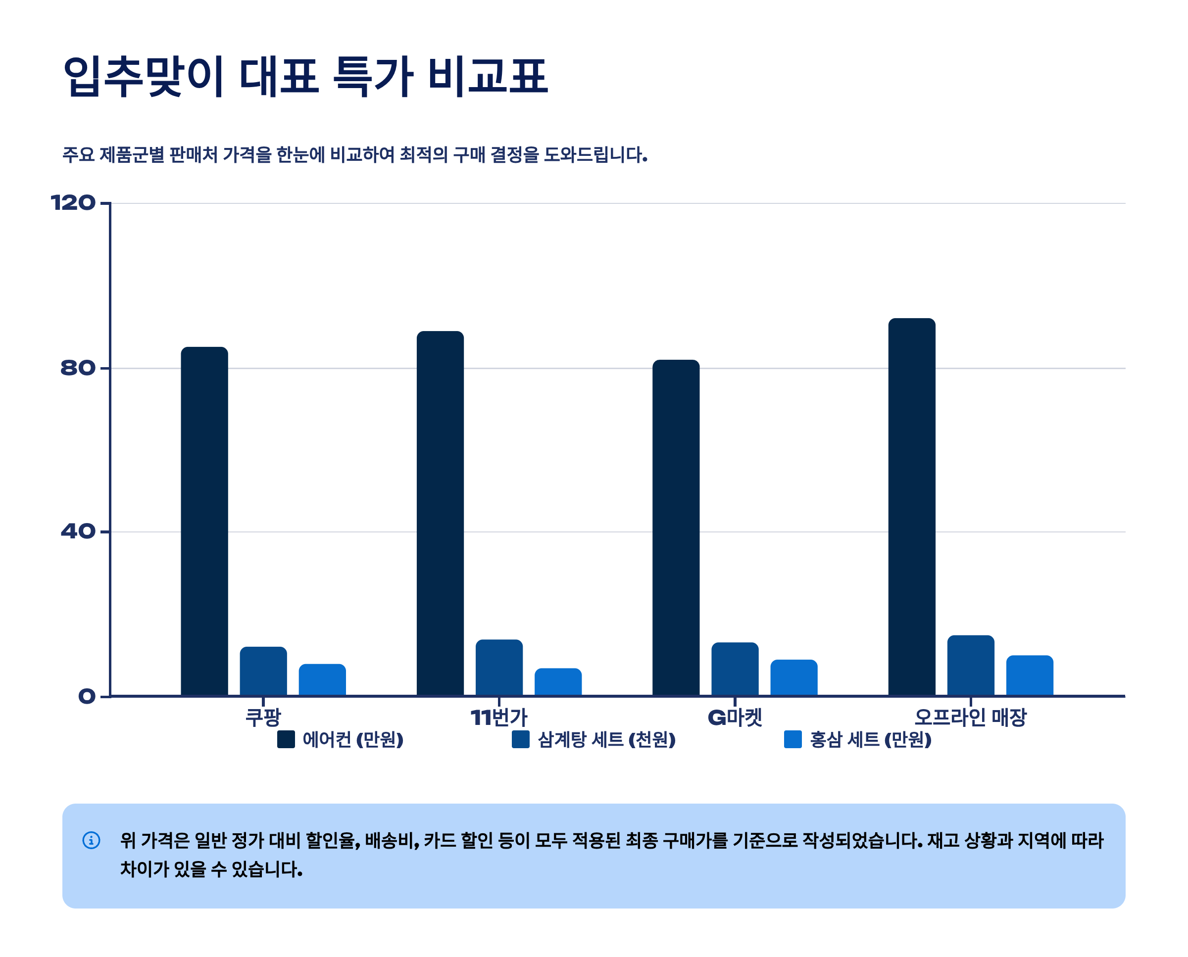 입추 시즌의 모든 할인 정보를 한눈에 비교할 수 있도록 정리했어요. 에어컨부터 생닭, 건강식품까지 카테고리별 최저가와 혜택을 확인하고 현명한 쇼핑 계획을 세워보세요. 특히 정부 지원금이나 카드 할인을 중복으로 적용하면 더욱 큰 혜택을 받을 수 있답니다. 각 제품의 특가는 한정 수량이거나 기간 한정인 경우가 많으니 서둘러 확인하는 것이 좋아요!