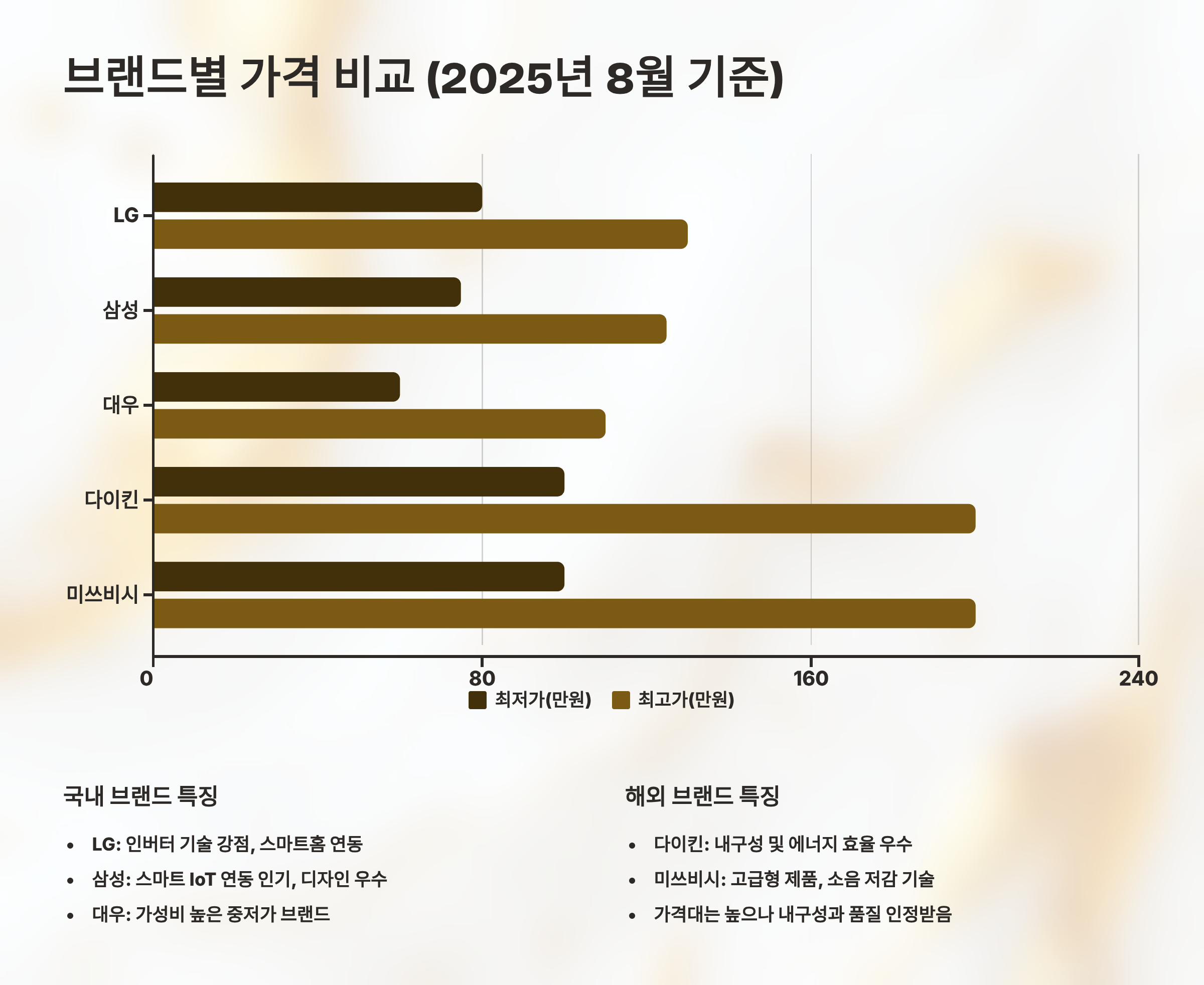 | 삼성 | 80-100만원 | 120-150만원 | 무풍 기술 |