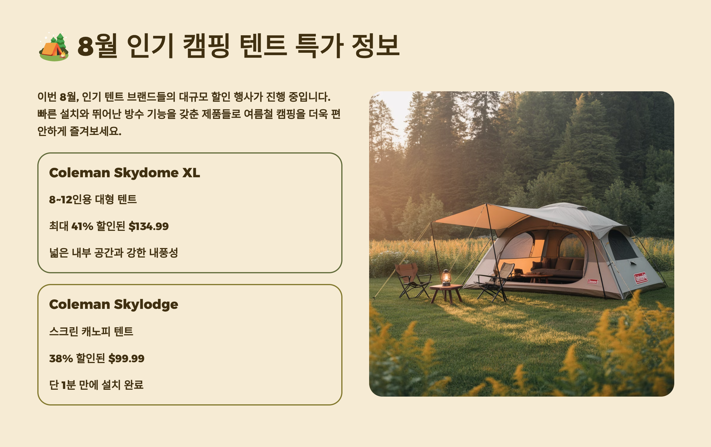 🏕️ 8월 인기 캠핑 텐트 특가 정보