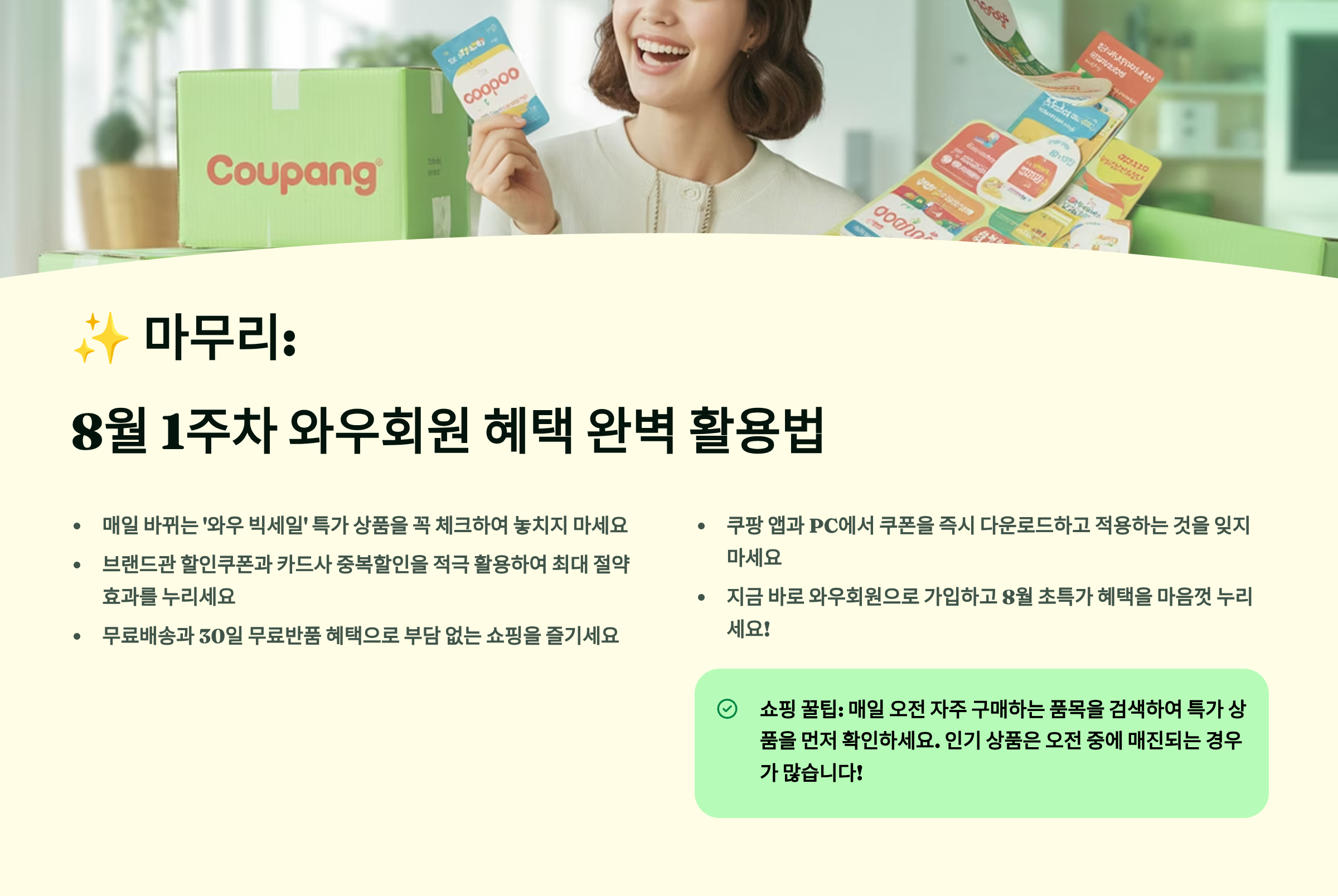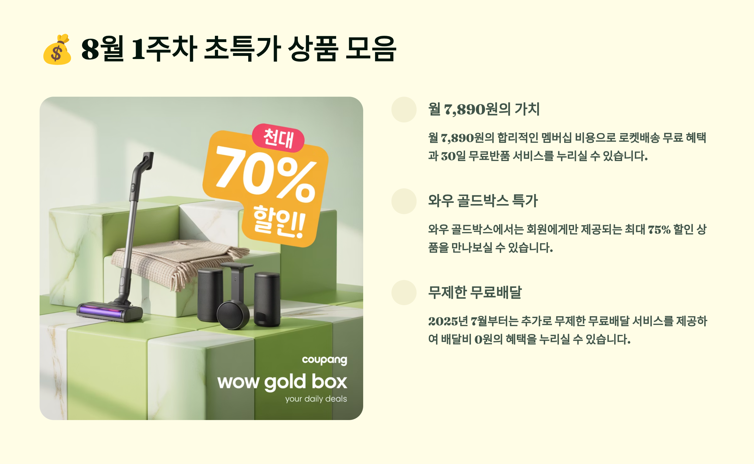 [8월 1주차] 쿠팡 와우회원 전용 할인 총정리 | 특가·쿠폰·무료배송 혜택 모음